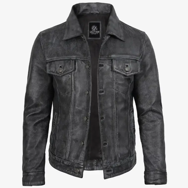 Men’s Vintage Smoky Distressed Genuine Leather Jacket
