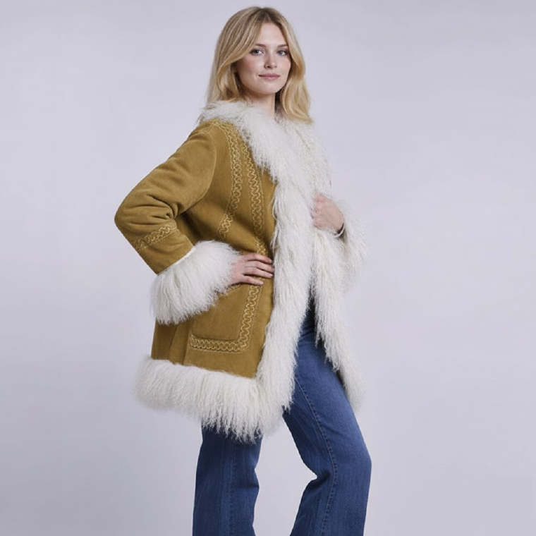 Vintage Men’s Brown Shearling Leather Fur Jacket