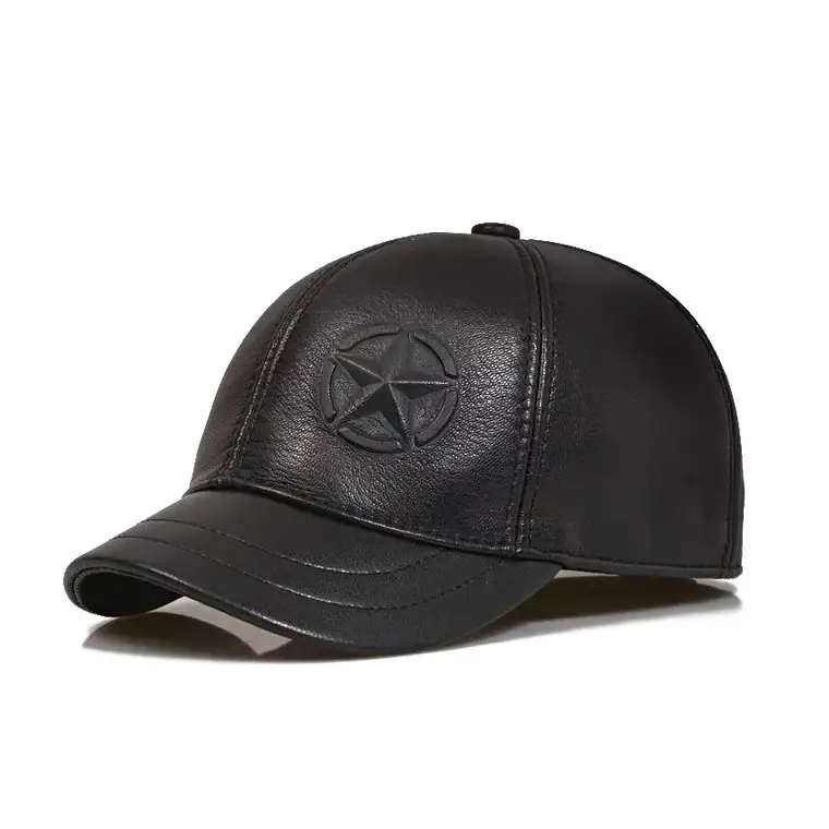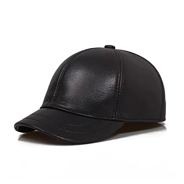 Plain Genuine Cowhide Leather Baseball Cap for Men