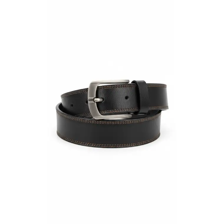 Men’s Brown Double-Stitch Laminated Leather Belt