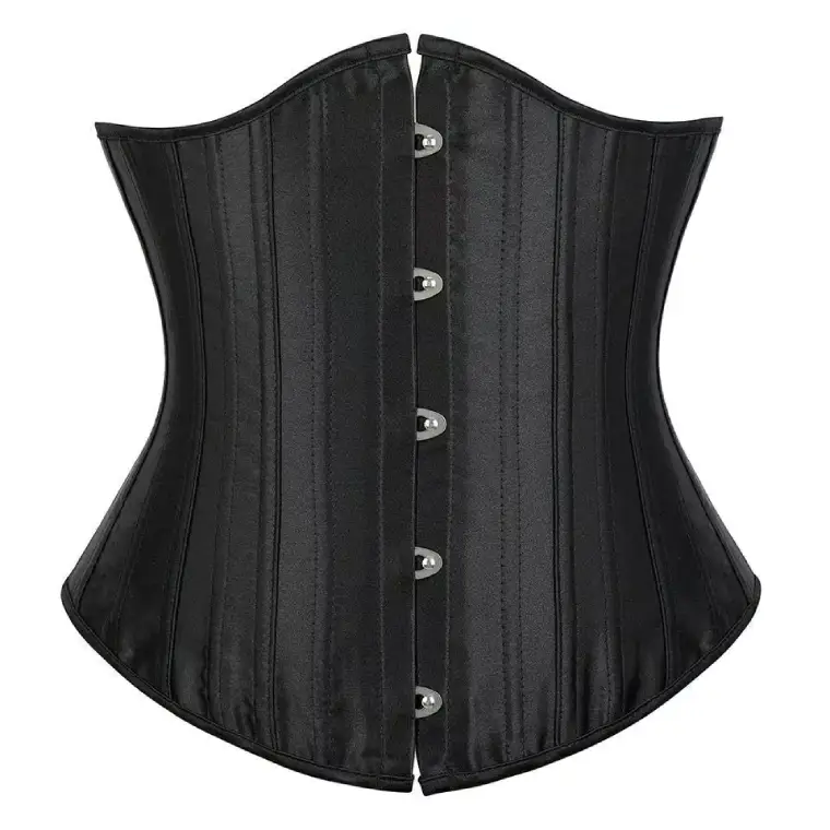 Elegant Black Satin Overbust Corset with Front Busk Closure